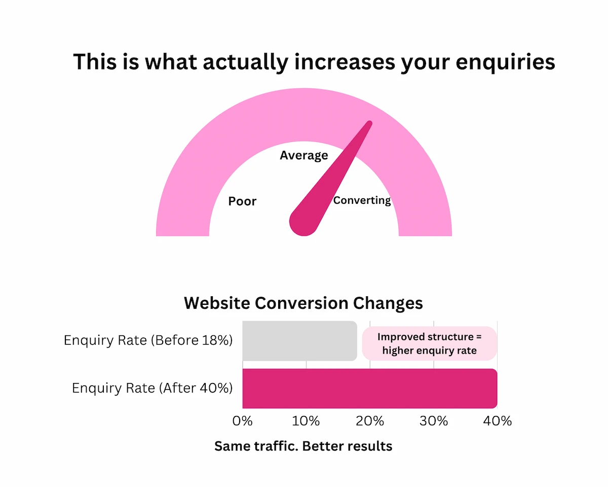 Because design alone does not generate enquiries. Structure, messaging, speed, and a clear call to action are what convert visitors into leads.